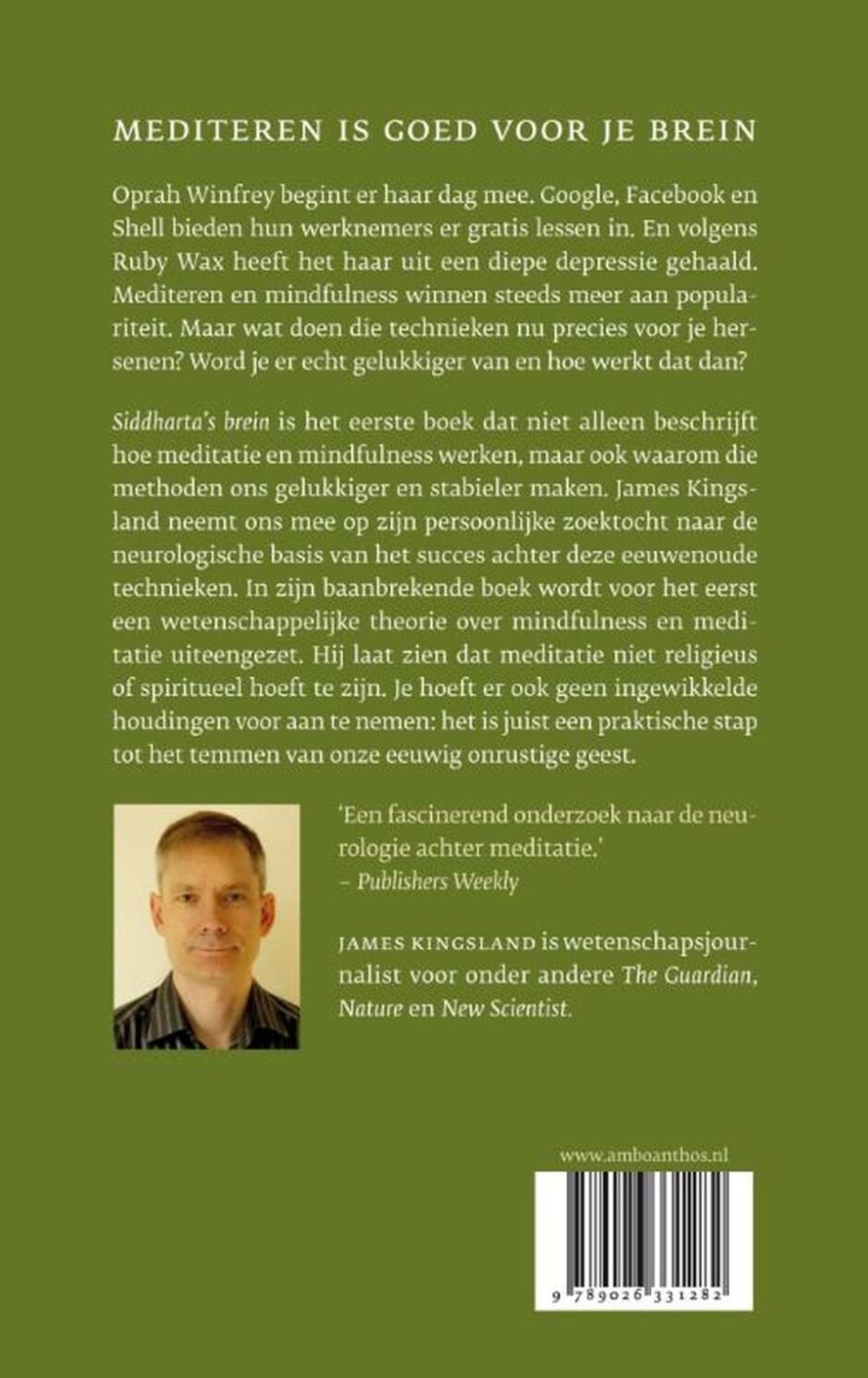In ‘Siddhartha’s brein’ beschrijft James Kingsland (wetenschapsjournalist voor onder andere ‘The Guardian’, ‘Nature’ en ‘New Scientist’) wat er in onze hersenen gebeurt als we mediteren en hoe hierdoor op de lange termijn nieuwe verbindingen in ons brein ontstaan. Recente onderzoeken tonen aan dat de eeuwenoude methode van mindfulness een panacee is voor de psychische gezondheidsproblemen van onze tijd: angst, stress, verslaving of stoornis; het is niet religieus of spiritueel, maar juist een praktische stap tot het temmen van de geest. ‘Siddharta’s brein’ is een wetenschappelijke benadering van mindfulness en een praktische gids tot meditatie, voor wie meditatie beter wil begrijpen en voor iedereen die tot nu sceptisch was. Mindfulness meditatie boeddhisme hersenwetenschap brein