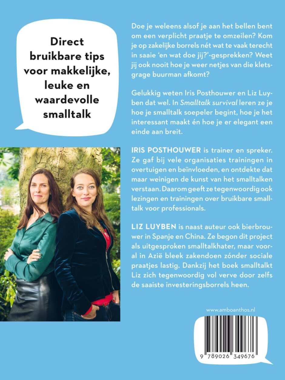 Gelukkig weten Iris Posthouwer en Liz Luyben dat wel. In Smalltalk survival leren ze je hoe je smalltalk soepeler begint, hoe je het interessant maakt én hoe je er elegant een einde aan breit.
