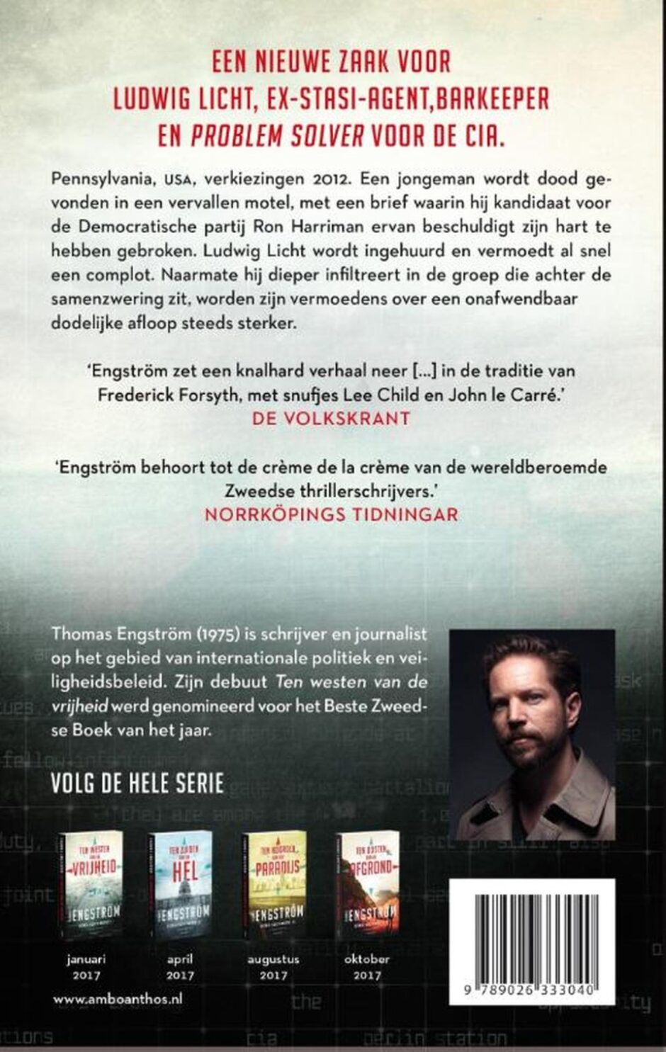 Thomas Engström (1975) is schrijver en journalist op het gebied van internationale politiek en veiligheidsbeleid. Hij studeerde rechten en specialiseerde zich in internationaal recht en mensenrechten. Hij werd Columnist van het Jaar en ontving voor Ten Westen van de vrijheid de prijs voor het Beste Zweedse Debuut. Later werd de thriller ook genomineerd voor het Beste Zweedse Boek van het Jaar. Engström is daarnaast vertaler, onder andere van het werk van Barack Obama en Ian Kershaw.