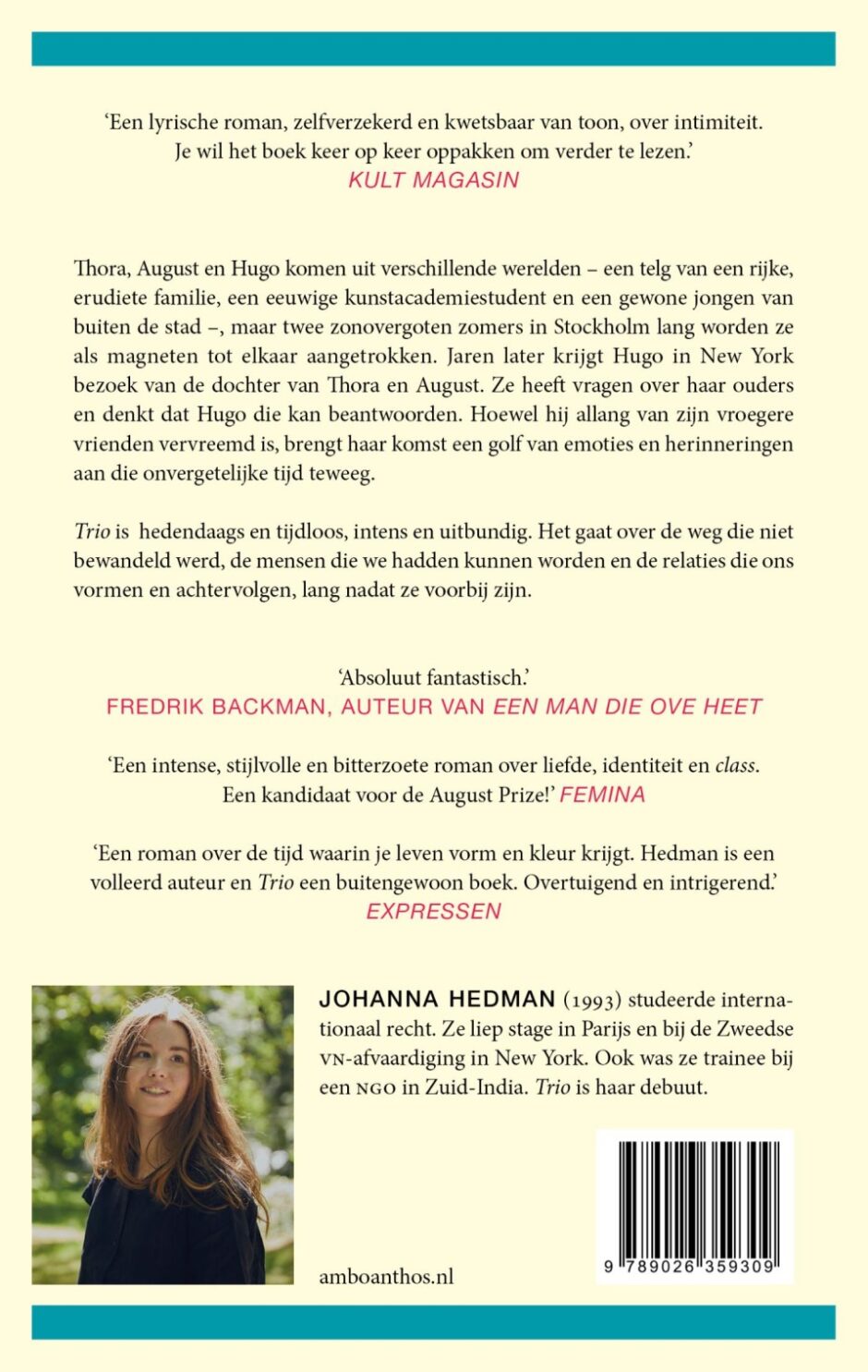 ‘Een roman over de tijd waarin je leven vorm en kleur krijgt. Hedman is een volleerd auteur en Trio een buitengewone roman. Overtuigend en intrigerend.’ – Expressen