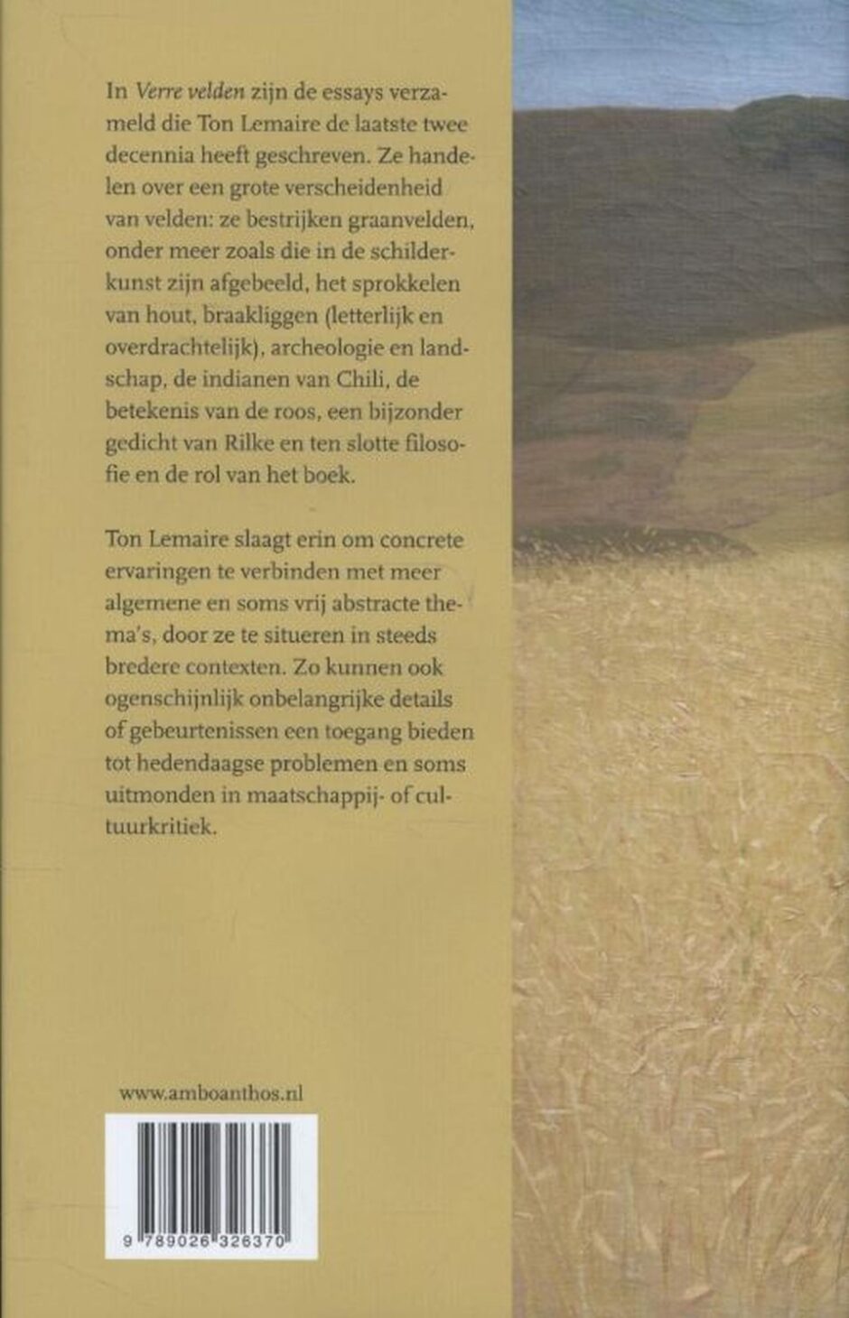 In Verre velden zijn de essays verzameld die Ton Lemaire de laatste twee decennia heeft geschreven. Ze handelen over een grote verscheidenheid van velden: de hoofdstukken bestrijken graanvelden, onder meer zoals ze in de schilderkunst zijn afgebeeld, het sprokkelen van hout, braakliggen (letterlijk en overdrachtelijk), archeologie en landschap, de indianen van Chili, de betekenis van de roos, een bijzonder gedicht van Rilke en ten slotte filosofie en de rol van het boek.