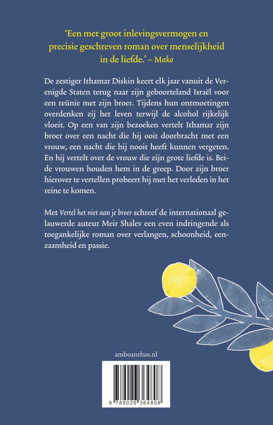 Vertel het niet aan je broer van de wereldberoemde Meir Shalev is de nieuwe en laatste roman van deze meesterverteller. Een even indringende als toegankelijke roman over verlangen, schoonheid, eenzaamheid en passie.