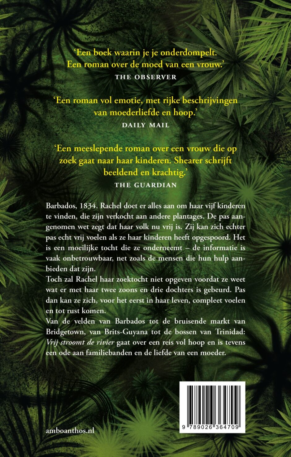 Toch zal Rachel haar zoektocht niet opgeven voordat ze weet wat er met haar twee zoons en drie dochters is gebeurd. Pas dan kan ze zich, voor het eerst in haar leven, compleet voelen en tot rust komen. Van de velden van Barbados tot de bruisende markt van Bridgetown, van Brits-Guyana tot de bossen van Trinidad: Vrij stroomt de rivier gaat over een reis vol hoop en is tevens een ode aan familie en de liefde van een moeder.