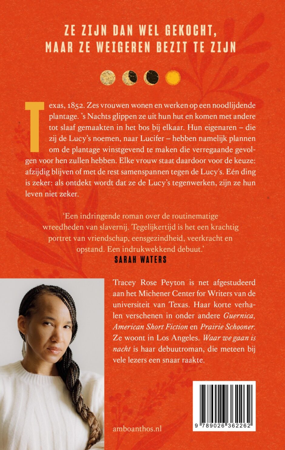 'Een indringende roman over de routinematige wreedheden van slavernij. Tegelijkertijd is het een krachtig portret van vriendschap, eensgezindheid, veerkracht en opstand. Een indrukwekkend debuut.' - Sarah Waters.