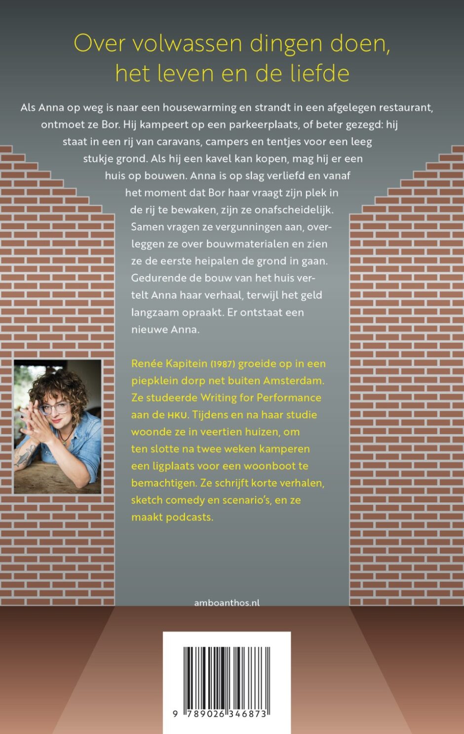 In Waarom we huizen bouwen van Renée Kapitein is Anna op weg naar een housewarming als ze strandt in en afgelegen restaurant. Daar ontmoet ze Bor. Hij kampeert op een parkeerplaats, beter gezegd: hij staat in een rij van caravans, campers en tentjes voor een leeg stukje grond, op misschien wel het allerwinderigste stukje van de stad. Hij mag er een huis bouwen. Die nacht blijft Anna bij Bor en de volgende ochtend ontbijten ze op de parkeerplaats. Anna is op slag verliefd. Vanaf het moment dat Bor haar vraagt zijn plek in de rij te bewaken, hoort Anna bij hem. Samen vragen ze vergunningen aan, overleggen ze over bouwmaterialen en zien ze de eerste heipalen de grond in gaan. Ze verhuizen zo snel mogelijk naar hun nieuwe huis, of eigenlijk naar de caravan die ze nu in het betonnen casco hebben geparkeerd. Maar tijdens de prehousewarming is Bor weg. En hij blijft ook weg. En dan neemt Anna voor het eerst in haar leven een ferm besluit: dit huis komt af.