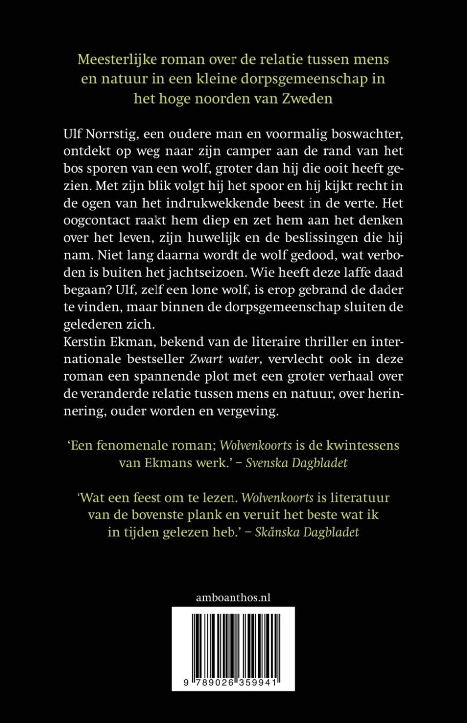 Kerstin Ekman grande dame van de Zweedse literatuur en bekend van de literaire thriller en internationale bestseller Zwart water, keert met Wolvenkoorts terug met een meesterlijke roman over de relatie tussen mens en natuur in een kleine dorpsgemeenschap in het hoge noorden van Zweden, over ouder worden en wat het betekent mens te zijn.