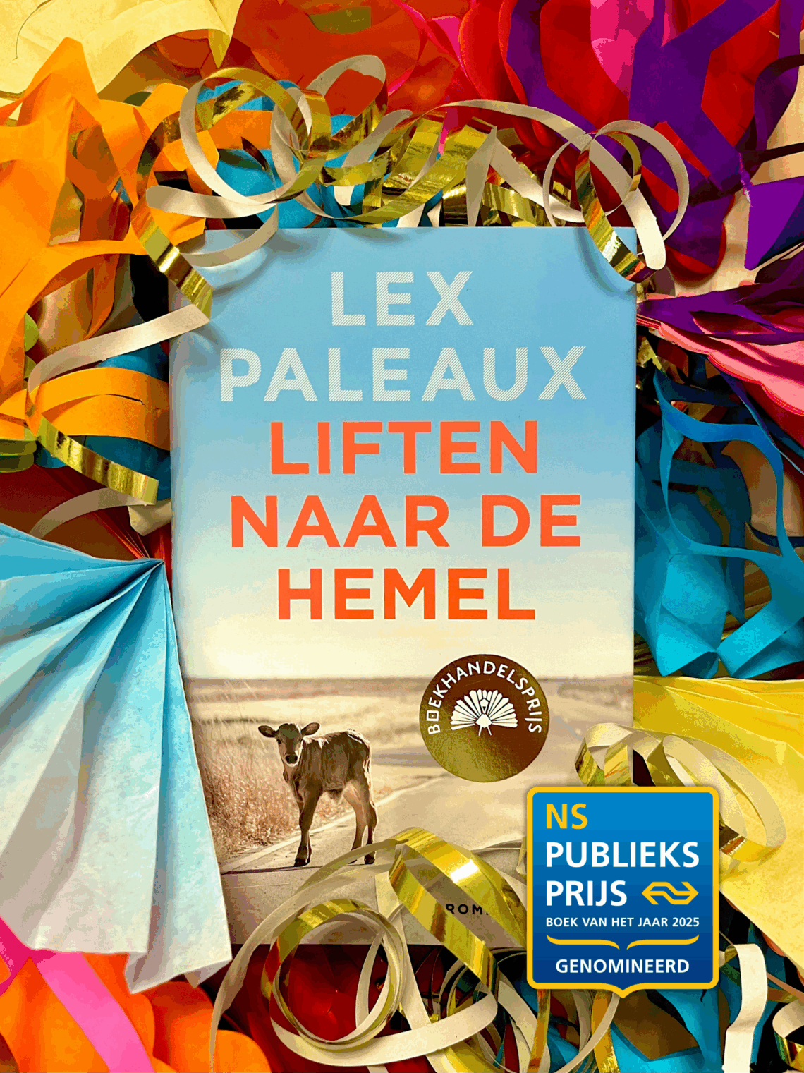 Zijn roman Liften naar de hemel won de Boekhandelsprijs 2025, werd genomineerd voor Beste Boek voor Jongeren 2025 én Mooiste Boekomslag 2025, werd erg goed besproken in de pers en de English World Rights werden verkocht aan S&S. Deze week wederom een prachtig succes om toe te voegen aan dit lijstje: Lex Paleaux is met Liften naar de hemel genomineerd voor de NS Publieksprijs 2025! Wat zijn wij, en Lex, trots!